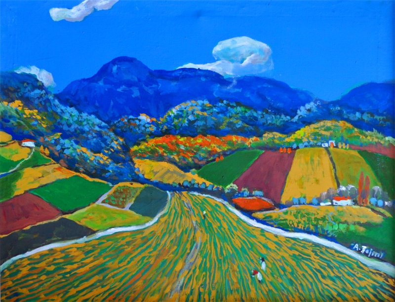 Explore the artworkExceptional on line Art Gallery of the painter Agim Zajmi The Raising of the Flag in Deçiç 1911(Albanian National Art Gallery)Oil on Canvas, 124 x 120 cm, 1987 Young girl(National Art Gallery)Oil on Canvas 65 x 54.7 cm, 1988 The Castle of Himara(National Art Gallery)Oil on Canvas, 50.5 x 60 cm, 1988 “Twelfth Night”, Stage Design, William Shakespeare(National Art Gallery)Tempera, 50.4 x 60.3 cm, 1981 Summer landscape Oil on wood, 78 x 72 cm, 1987 Landscape from Korça with snowOil on Canvas 65 x 54.7 cm, 1988 Old mountain man Oil on Canvas, 54 x 64 cm Albanian woman from MirditaOil on Canvas, 50 x 40 cm, 1983 “Carmen”, Georges Bizet, stage designTempera, 55 x 65 cm, 1962 Landscape from Berat Oil on Canvas 65 x 54.7 cm, 1988 Spirit of freedomOil on Canvas, 50.5 x 60 cm, 1988 Naim Frasheri, albanian poetOil on Canvas, 50.4 x 60.3 cm, 1981 Valbona, Albania LandscapeOil on Canvas, 45×55 cm, 1987 Portrait of a young girlOil on Canvas, 50×60 cm, 1986 Landscape from SarandaOil on Canvas, 50×60 cm Hillscape around Lake TiranaOil on Canvas, 50 x 40 cm, 1983 Woman portrait with flowersOil on Canvas, 40×60 cm, 1987 Landscape from central AlbaniaOil on Canvas, 42x57cm, 1986 Still life with flowersOil on Canvas, 45×55 cm Albanian womansOil on Canvas, 90×80 cm, 1983 The future of EuropeOil on Canvas, 106×96 cm, 1987 Albanian motherOil on Canvas, 42x57cm, 1986 Dance from the northOil on Canvas, 45×55 cm Weeding clothesOil on Canvas, 60×47 cm, 1983 Dancing mans Traditional Men’s DanceOil on Canvas, 75×70 cm, 1987 Young woman in springtimeOil on Canvas, 42x53cm, 1986 Dance from the northOil on Canvas, 79×79 cm,1999 Springtime museOil on Canvas, 61×50 cm, 1986 Dancing mans Traditional Men’s DanceOil on Canvas, 80×90 cm, 1995 Young woman in springtimeOil on Canvas, 80x90cm, 2005 Dance from the northOil on Canvas, 66×65 cm, 1993 Springtime museOil on Canvas, 65×55 cm, 1962 Dedë Gjo Luli (Albanian National Art Gallery)Oil on Canvas, 63x76cm, 1984 Heritage and changeOil on Canvas, 55x70cm, 1986 Mother and childrenOil on Canvas, 75×65 cm, 1993 The boats in the seaOil on Canvas, 64×50 cm, 1961 Romeo and Juliet(stage-design, Albanian National Theater)Oil on Canvas, 67x57cm, 1963 Cuca e maleve (stage-design, Albanian National Theater)Acrylic, 1966 The general of the dead Army(stage-design, Albanian National Theater)Tempera, 1970 Fisherman family(stage-design, Albanian National Theater)Tempera, 1974 Albanian woman bringing waterOil on Canvas, 50x60cm, 1987 Albanian will for freedom and peaceOil on Canvas, 90×90 cm, 1986 Landscape from UlqinOil on Canvas, 65×65 cm, 1996 Sunflowers field and womanOil on Canvas, 26×37 cm Landscape form BeratOil on Canvas, 66x67cm, 1987 Landscape from ValbonaOil on Canvas, 55x45cm, 1986 Fields of AlbaniaOil on Canvas, 70×55 cm, 1986 Albanian typical landscapeOil on Canvas, 60×50 cm, 1987 Prizren League (1878)(Albanian National Art Gallery)Oil on Canvas, 86x98cm, 1981 Ganimete Tërbeshi(Albanian National Art Gallery)Oil on Canvas, 110×81, 1981 Fushë Kosova – Kosovo Field (Albanian National Art Gallery) – 1st Prize in National ArtOil on Canvas, 100×110 cm, 1989 Albanian will for freedomOil on Canvas, 50x60cm, 1991 Discover more about paintings of Agim ZajmiStay updated on latest exhibitions and events.Get in Touch